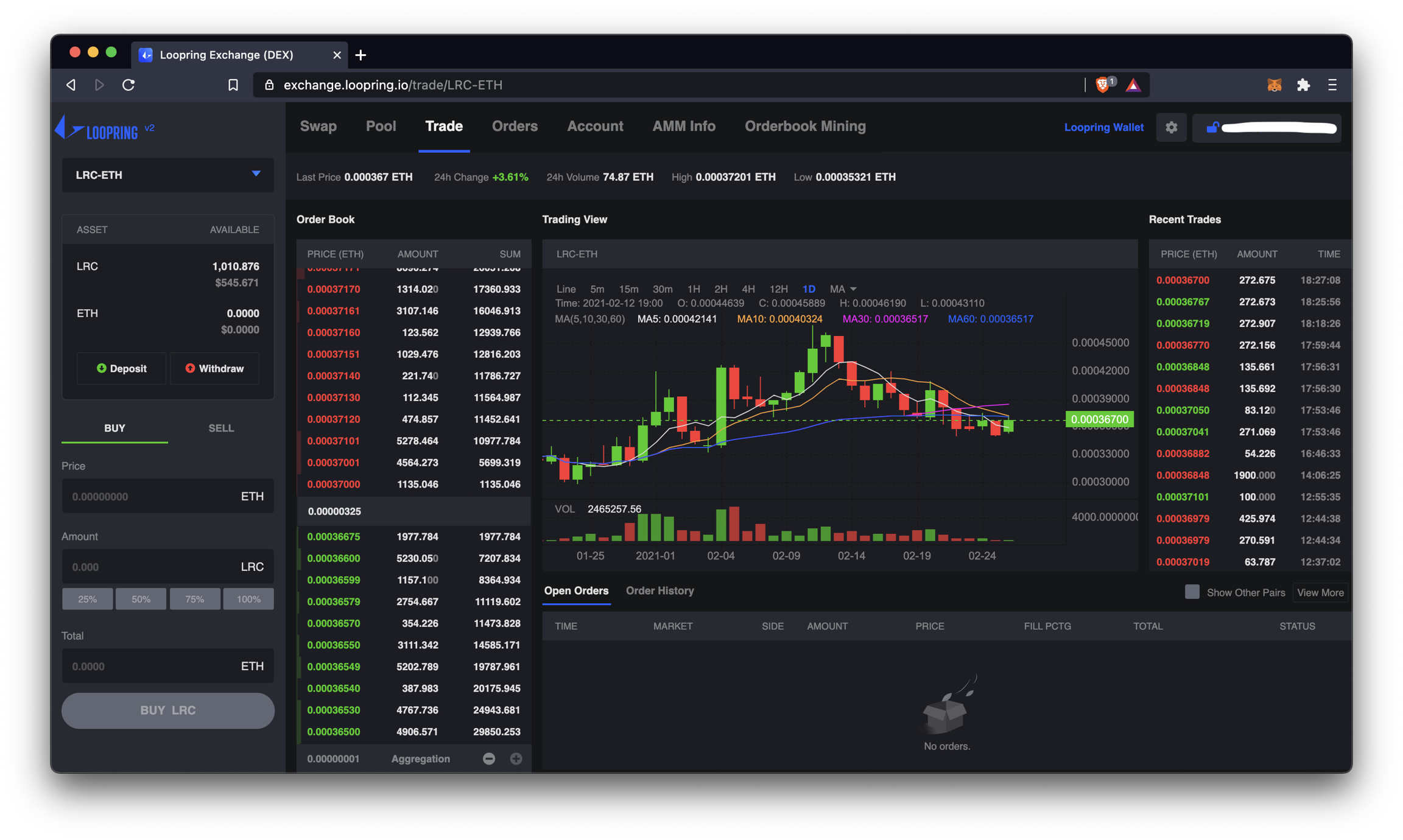 Loopring is more than just an AMM. It is also an orderbook DEX. So if you rather ‘trade’ a pair on the books rather than the pool, head over to the ‘Trade’ tab.